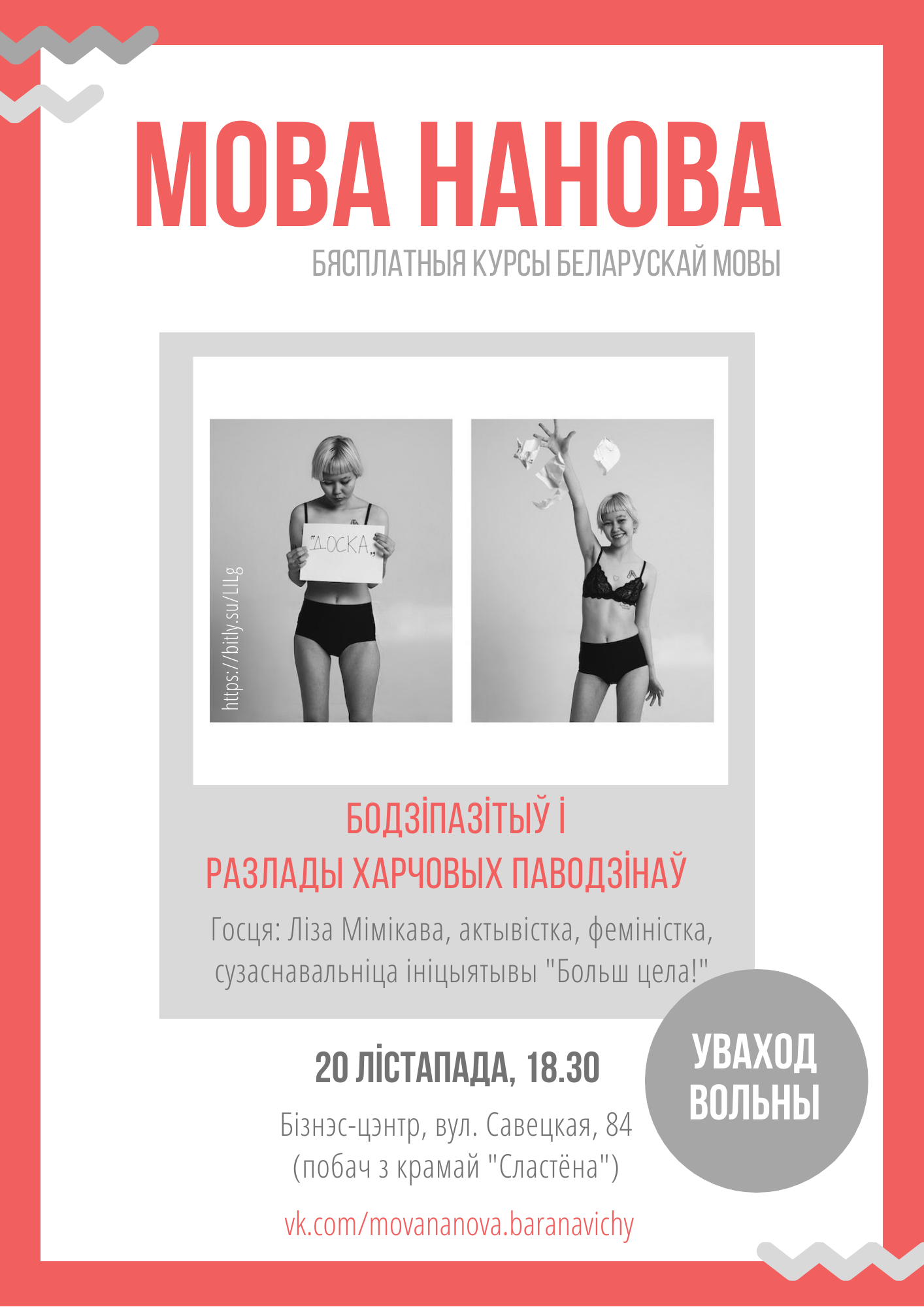 Мы маладая жаночая ініцыятыва. Займаемся асветай праблемаў разладаў харчовых паводзінаў (РХП), сацыяльных праблемаў, звязаных з адчуваннем свайго цела, прасоўваем ідэі бодзіпазітыва.